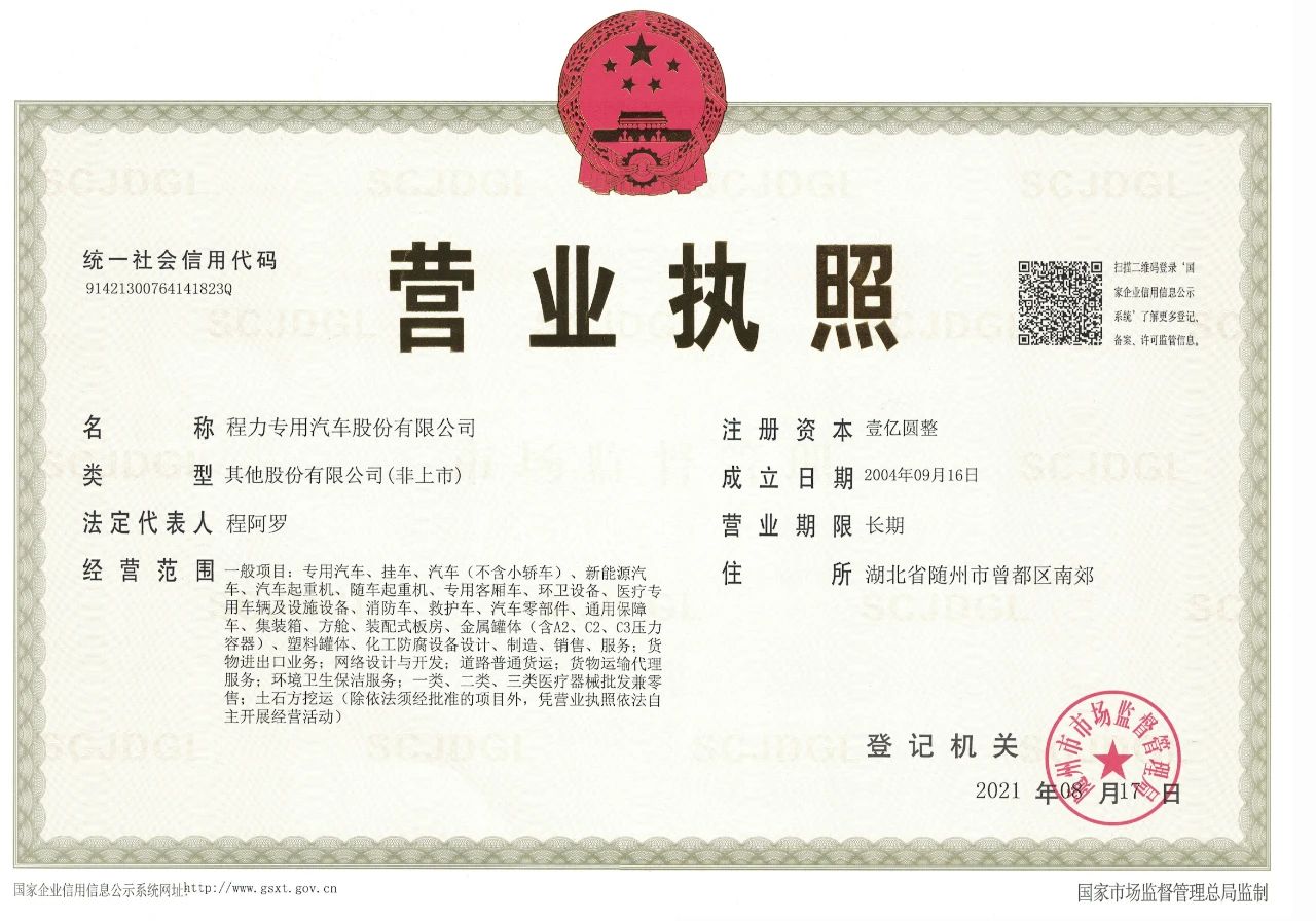 程力汽車 程力集團(tuán) 程力專用汽車股份有限公司開票信息和營業(yè)執(zhí)照