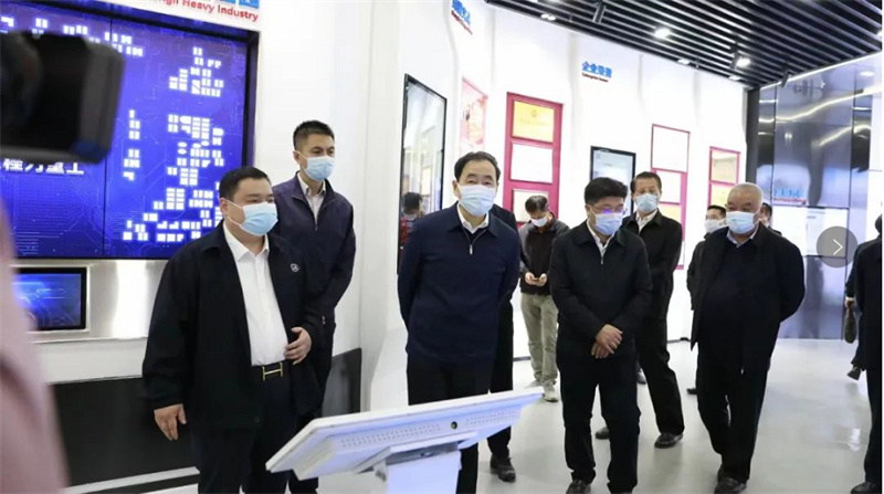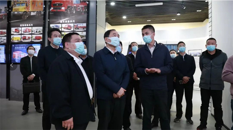 右上圖:湖北省副省長趙海山(左二)、隨州市政府副市長黃繼軍(左三)與程力汽車集團董事長程阿羅(左一)等負責人參觀程力專汽5G數(shù)字云展廳。 程力集團高質(zhì)量發(fā)展的重大舉措引起了湖北省領導的高度重視,近日,趙海山副省長一行領導,在隨州市副市長黃繼軍、曾都區(qū)區(qū)委姜晧,以及隨州市、曾都區(qū)政府職能部門負責人的陪同下,赴程力汽車集團進行專題調(diào)研,他首先參觀了程力汽車集團5G數(shù)字云展廳,對程力集團跨越式發(fā)展與對地方經(jīng)濟建設的貢獻,表示了充分肯定;鼓勵企業(yè)以新技術(shù)、新材料、新工藝為重要抓手,以研發(fā)生產(chǎn)氫燃料動力整車和新能源商用車暨應急裝備產(chǎn)品轉(zhuǎn)型升級為突破口,一心一意謀發(fā)展,堅定不移地走科技創(chuàng)新和綠色環(huán)?沙掷m(xù)發(fā)展之路。