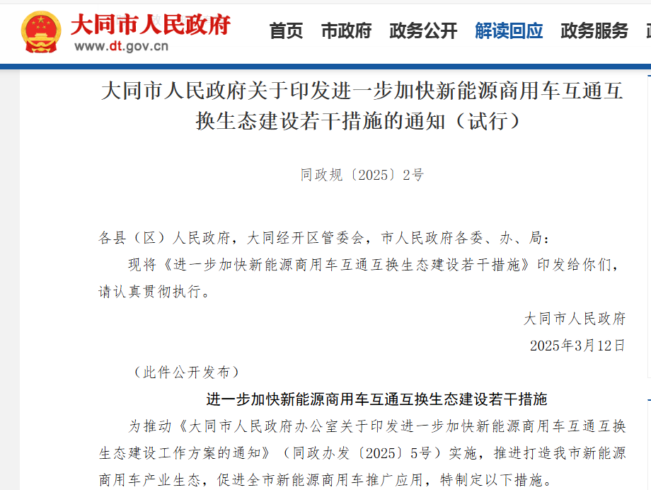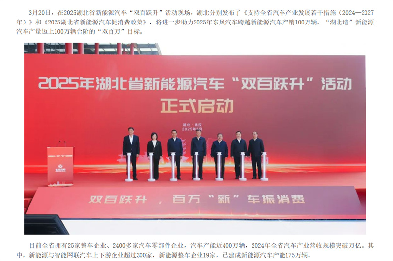 3月19日 (下午)三部門聯(lián)合升級貨車更新政策:交通運輸部、發(fā)改委、財政部將老舊貨車補貼范圍擴展至國三/國四排放車輛,取消燃料類型限制。根據(jù)新規(guī),提前報廢并更換新能源貨車的企業(yè)最高可獲14萬元/車補貼,購置國六車型補貼7萬元。政策特別設(shè)置"綠色通道",對參與氫燃料電池車示范運營的企業(yè)額外給予3萬元運營補貼。支持資金按照總體9:1的原則實行央地共擔。 3月20日 湖北省確定汽車產(chǎn)業(yè)“雙百萬”目標 湖北省分別發(fā)布了《支持全省汽車產(chǎn)業(yè)發(fā)展若干措施(2024—2027年)》和《2025湖北省新能源汽車促消費政策》,將進一步助力2025年“湖北造”新能源汽車產(chǎn)量邁上100萬輛臺階的目標。 3月21日 大同構(gòu)建新能源商用車生態(tài)圈 3月29日 央企重組開啟產(chǎn)業(yè)新格局 3月,財政部的扶持政策不僅延長了購置稅減免期限,還加大了對充換電基礎(chǔ)設(shè)施和智能網(wǎng)聯(lián)技術(shù)的投入,為新能源專用車的市場推廣和基礎(chǔ)設(shè)施建設(shè)提供了有力保障。此外,三部門聯(lián)合升級的貨車更新政策,提供了豐厚的補貼,將促進新能源專用車的銷售。湖北省確定汽車產(chǎn)業(yè)“雙百萬”目標不僅為當?shù)?/span>提供了政策支持和市場需求保障,還促進了產(chǎn)業(yè)鏈的協(xié)同發(fā)展和新能源專用車的普及推廣。這一系列政策將有助于推動新能源專用車產(chǎn)業(yè)的快速發(fā)展和壯大。 |