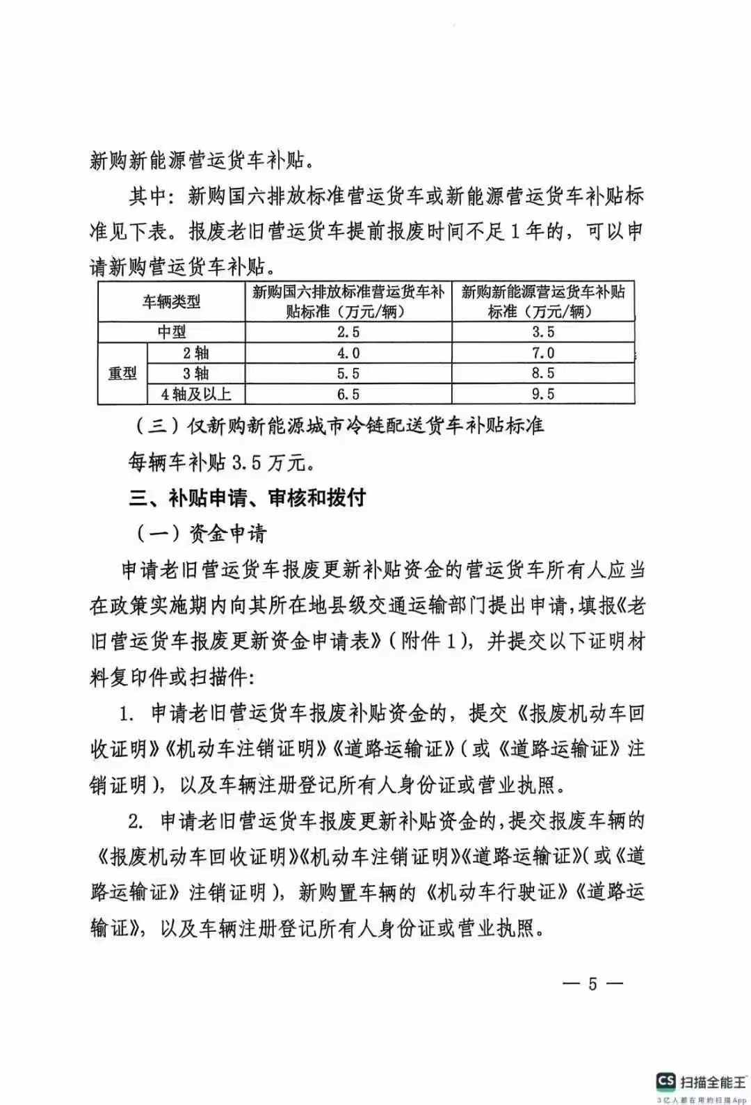 2025年老舊運營貨車報廢以舊換新政策補貼實施細則