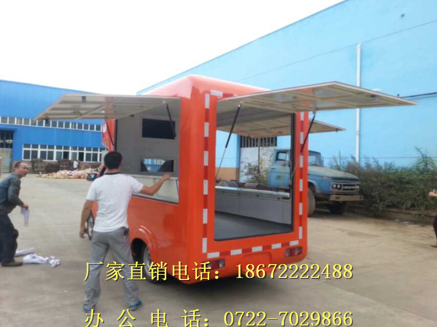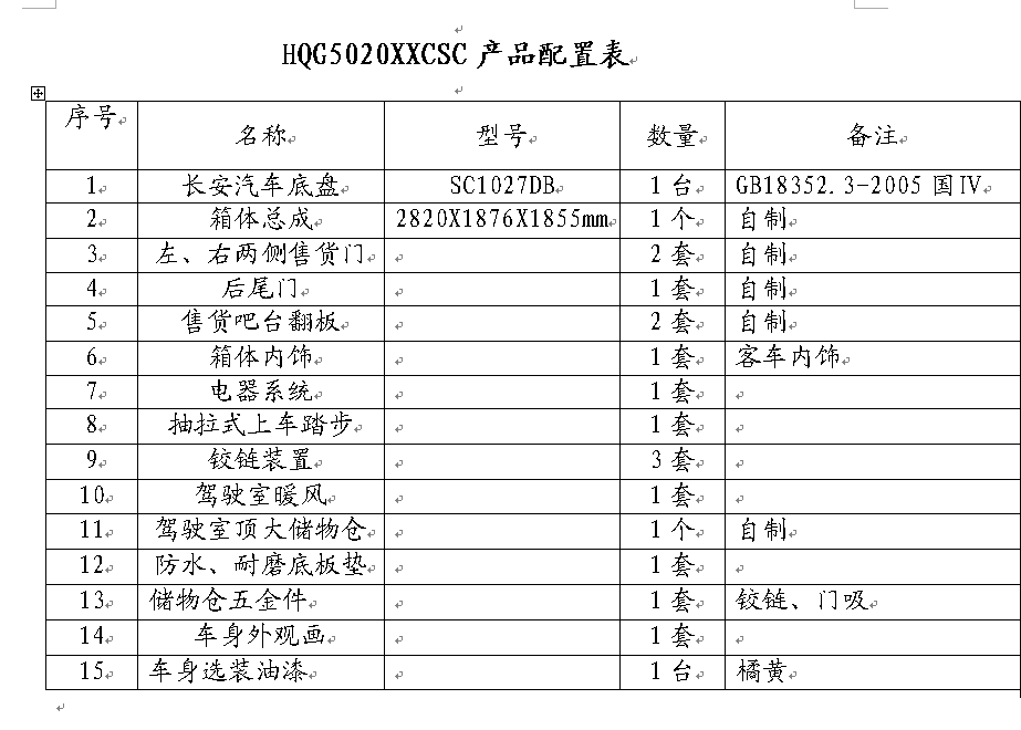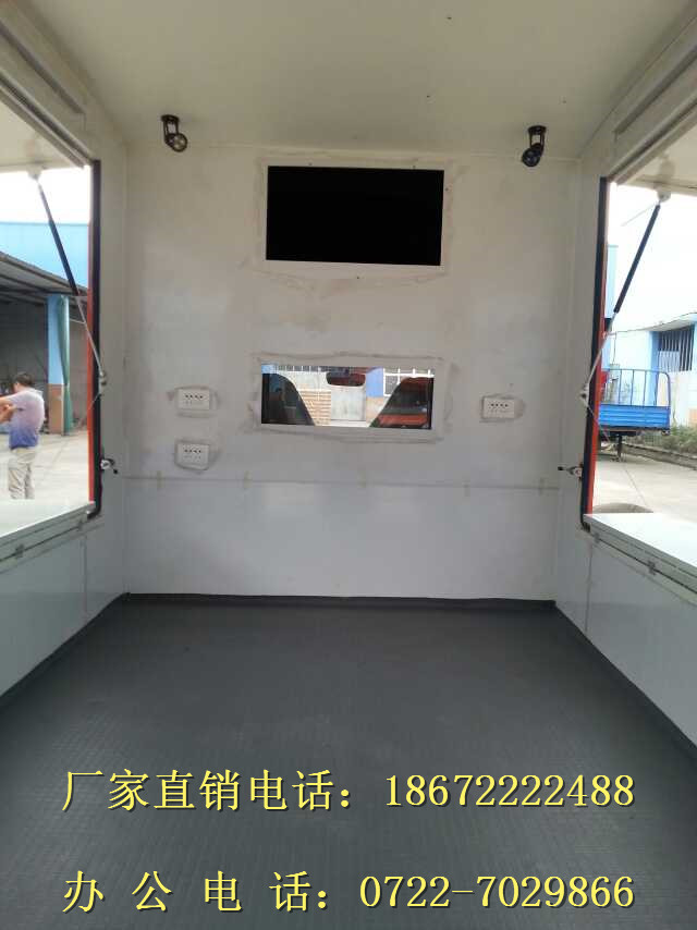 1.車廂頂部封閉選裝通風(fēng)窗時(shí),高2590mm;選裝頂置空調(diào)時(shí),高2890 mm.2左右兩側(cè)及后部均可選裝led屏、廣告滾軸燈箱、玻璃窗或上掀門。3.該車前部頂端兩側(cè)裝有喇叭,可進(jìn)行聲音宣傳.4.該車裙邊工具箱艙門可選裝.5.側(cè)部和后下部防護(hù)裝置為鋼板整體式側(cè)圍防護(hù)結(jié)構(gòu),離地高度300mm,側(cè)部和后下部防護(hù)裝置材料材質(zhì)為Q235A.發(fā)動(dòng)機(jī)型號(hào)/最大凈功率(kw)分別為:JL466Q1/46.56;6.可以選裝不同車體顏色和外觀貼畫.