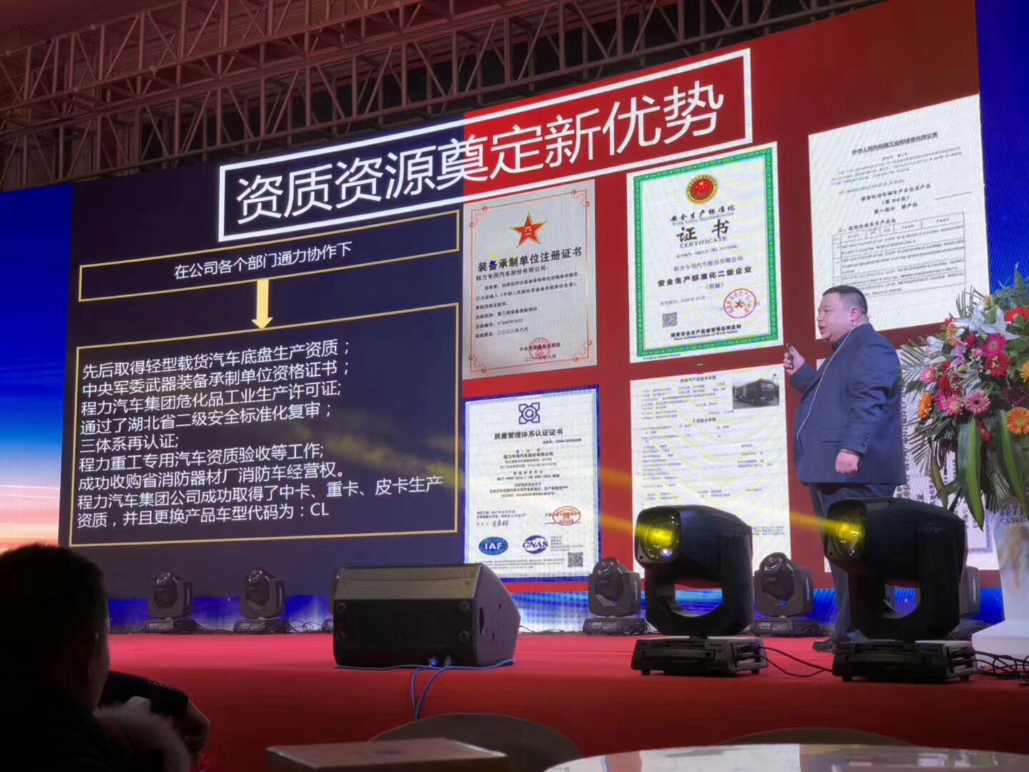 三、資質(zhì)資源奠定新優(yōu)勢: 在公司各個部門通力協(xié)作下,先后取得輕型載貨汽車底盤生產(chǎn)資質(zhì);中央軍委武器裝備承制單位資格證書;程力汽車就團(tuán);饭I(yè)生產(chǎn)許可證;通過了湖北省二級安全標(biāo)準(zhǔn)復(fù)審;三體系在認(rèn)證;程力重工專用汽車資質(zhì)驗收等工作;成功收購省消防器材廠消防車經(jīng)營權(quán);程力汽車集團(tuán)公司成功取得了重卡、重卡資質(zhì),并且跟換產(chǎn)品車型代碼:CL