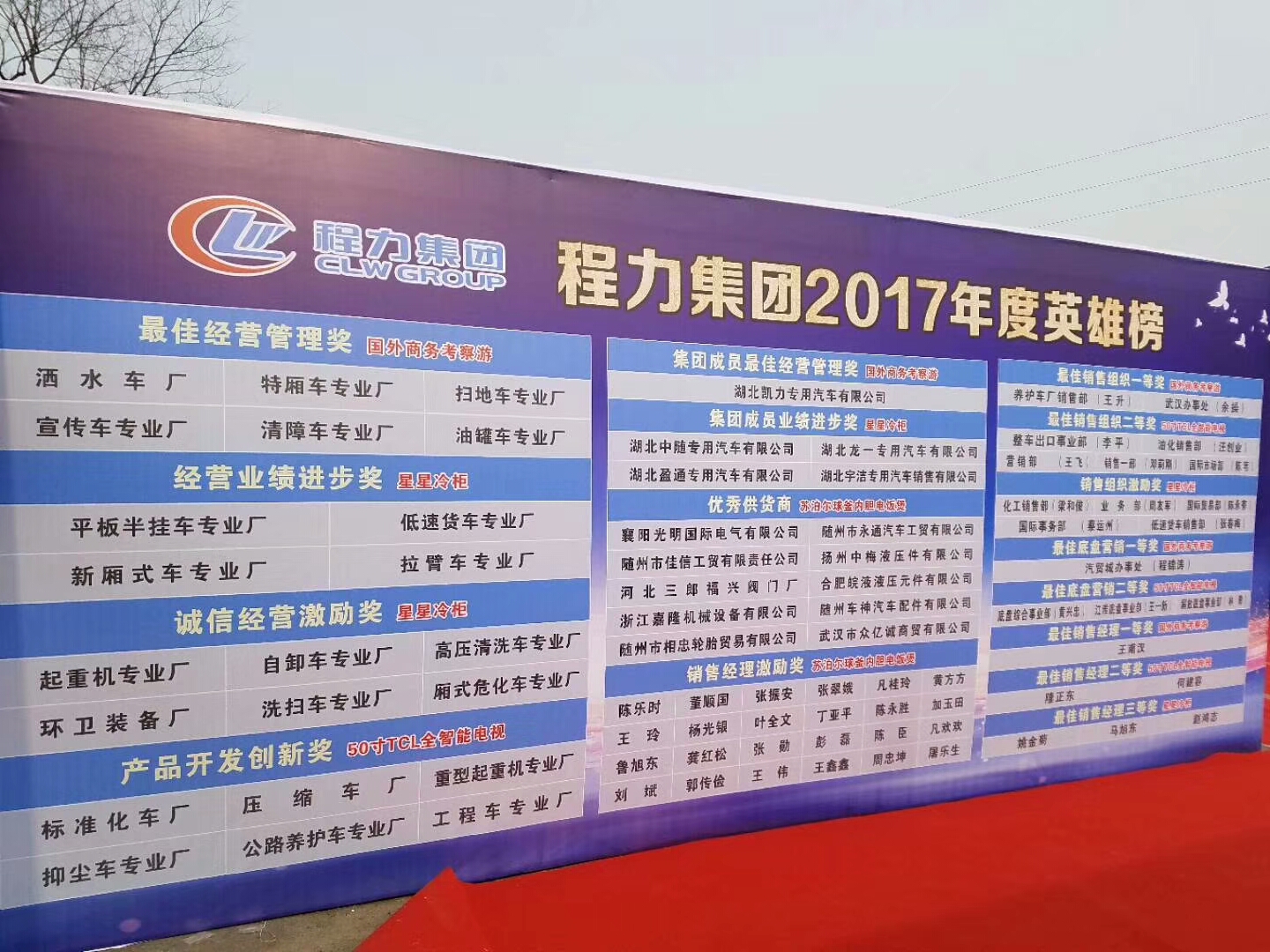 創(chuàng)新引領(lǐng)新作為,高質(zhì)促進(jìn)新發(fā)展-湖北程力汽車集團(tuán)2017年企業(yè)工作報告 今天,湖北程力汽車公司的新春年會,圓滿召開! 一、2017年湖北程力汽車公司取得的成績,生產(chǎn)各類專用汽車產(chǎn)值36億元,創(chuàng)造年產(chǎn)值增長10億的奇跡,回顧2017年展望2018年在新的一年里目標(biāo)是突破40億元邁向50億元。 自主創(chuàng)新開發(fā)新產(chǎn)品:環(huán)境監(jiān)測車、多功能抑塵造霧車、新能源皮卡汽車、輕量化鎂鋁合金罐式半掛車、奔馳威霆商務(wù)車、中置軸轎運(yùn)車、高端清淤車、蓄能供熱車、清淤運(yùn)輸車!