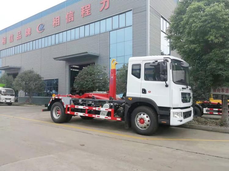 東風多利卡D9勾臂式垃圾車,承載重量12-16噸(垃圾加箱體)。可配套容積8-12方移動壓縮垃圾站或15-18方勾臂垃圾箱。國六排放,柴油發(fā)動機。伸縮式套臂,提升重量12噸、16噸可選,加強型副梁,鑄鋼尾托輪,電控+手動操控,帶鎖緊架、鎖緊油缸。液壓完成上箱+下箱+鎖緊+自卸等作業(yè)。尾部帶液壓后支腿。 帶自動裝卸垃圾箱功能,配10-16立方鉤臂垃圾箱或者移動壓縮垃圾站。一車可以配多個垃圾廂,帶自卸功能。 | 湖北程力國六D9勾臂垃圾車(車廂可卸式垃圾車)程力威牌CLW5180ZXXE6型車廂可卸式垃圾車圖片價格: