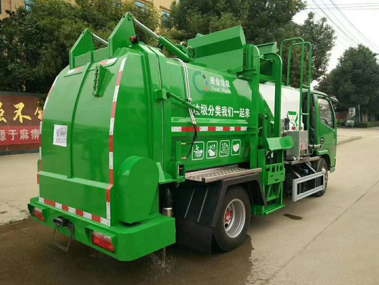 國(guó)六東風(fēng)多利卡D6餐廚垃圾車(chē),玉柴140馬力/朝柴130馬力,云內(nèi)126馬力,3308mm軸距,7.00R16鋼絲輪胎,原廠空調(diào),電動(dòng)玻璃,中控鎖;嘉善取力器,合肥油泵,中梅多路閥,江蘇液壓油缸;帶推鏟卸料,擠壓干濕分離;后蓋帶密封條液壓鎖緊;拉桿提升機(jī)可掛120/240L國(guó)標(biāo)垃圾桶;后門(mén)鎖緊與開(kāi)關(guān)防誤操作,提升機(jī)與上蓋、推鏟防誤操作;帶高壓清洗功能,液壓馬達(dá),清洗泵,自回位巻盤(pán),水槍;車(chē)身高位示廓燈/邊燈/作業(yè)照明燈。標(biāo)配手控+電控操作,可選裝無(wú)線遠(yuǎn)程控制。 餐廚垃圾車(chē),又稱餐余垃圾車(chē)、余廚垃圾車(chē)或者泔水車(chē),是用于收集和運(yùn)輸生活垃圾、食品垃圾(泔水)及城市淤泥的專用車(chē)輛,改裝部分具有裝、卸垃圾自動(dòng)化程度高、工作可靠、密封性好、裝載容積大、操作簡(jiǎn)便、作業(yè)過(guò)程密閉,無(wú)污水泄露和異味的散發(fā),環(huán)保性好等特點(diǎn)?膳溲b載不同規(guī)格的標(biāo)準(zhǔn)垃圾桶,具有廣泛的適用性。 該車(chē)型外形美觀,性價(jià)比高、安全可靠、駕駛便捷。主要用于收集與轉(zhuǎn)運(yùn)餐飲業(yè)、賓館、單位食堂等產(chǎn)生的餐廚垃圾,也可用于收集與轉(zhuǎn)運(yùn)居民小區(qū)廚余和生活垃圾。 上裝由箱體、后門(mén)機(jī)構(gòu)、密封鎖緊機(jī)構(gòu)、推板機(jī)構(gòu)、掛桶機(jī)構(gòu)及操縱機(jī)構(gòu)組成。 餐廚垃圾車(chē)主要性能及配置: 固液分離: 將桶裝餐廚泔水垃圾經(jīng)專用提升架緩緩上提,在車(chē)頂部倒入車(chē)廂內(nèi),被投放的垃圾經(jīng)過(guò)強(qiáng)有力的推板擠壓,垃圾箱底部與推鏟板面設(shè)置大量過(guò)濾孔,可真正實(shí)現(xiàn)箱內(nèi)餐廚垃圾固液的初步分離,被分離的液體進(jìn)入箱體底部的污水箱,固體垃圾被壓縮儲(chǔ)存在罐體,體積變小,如此反復(fù)待裝滿后送至餐廚垃圾資源優(yōu)化處理廠卸料。餐廚垃圾裝載由垃圾桶提升系統(tǒng)完成,該系統(tǒng)具有垃圾桶鎖止結(jié)構(gòu),裝卸安全可靠。垃圾桶與垃圾投入口銜接好,保證裝卸過(guò)程中餐廚垃圾不溢撒、不遺漏。垃圾投入口與推板之間有足夠距離,推板與罐體內(nèi)表面設(shè)有密封裝置,避免餐廚垃圾投入過(guò)程及分離過(guò)程中溢到推板后方。 液壓系統(tǒng)由泵、液壓閥和順序閥以及各種功能的液壓油缸、高低壓管路組成。關(guān)鍵部件可選用原裝進(jìn)口,保證產(chǎn)品工作可靠、安全 罐體內(nèi)分上、下兩層,下層為固液分離后污水收集箱,污水箱兩頭高,中間低,設(shè)有排污口,以保證污水排放干凈。 |