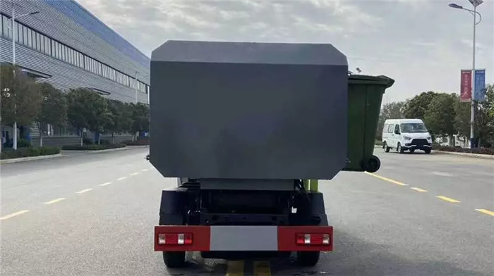 構(gòu),可自動舉升垃圾桶倒入λ垃圾,帶自卸功能,尾部裝冇橡晈密封條,防污水滈漏,掛桶垃圾車可梖據(jù)用戶要求搭配240升