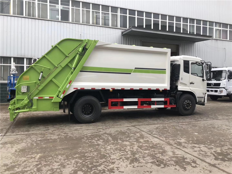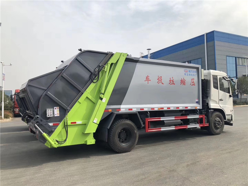 專用部分主要技術(shù)特點(diǎn)及產(chǎn)品描述: 1.垃圾箱:采用加強(qiáng)梁和鋼板焊接而成牢固的框架結(jié)構(gòu),實(shí)際容積最大為12-14立方,外形美觀,重量輕, 受力好,不變形;推鏟由鋼管骨架和折面板構(gòu)成,不僅結(jié)構(gòu)輕巧,又能使垃圾均勻分布,卸料干凈徹底;填裝器主要由填裝器殼體、滑板、刮板等構(gòu)件組成,各構(gòu)件采用受力良好的梁板或箱型結(jié)構(gòu),結(jié)構(gòu)牢固,重量輕;為了提高使用壽命,對(duì)箱體進(jìn)行了磷化防銹處理,并噴涂防銹底漆。2.液壓系統(tǒng):利用電控和液壓控制的優(yōu)點(diǎn),通過(guò)控制轉(zhuǎn)換,保證了各機(jī)構(gòu)動(dòng)作準(zhǔn)確可靠,提高了使用可靠性和效率;采用了先進(jìn)的液壓舉升安全回路。其原理是在液壓系統(tǒng)中的舉升油缸上設(shè)置了單向平衡閥。該閥隔斷了舉升油缸與液壓膠管的直接連接,即使油管爆裂,填裝器也不會(huì)突然落下造成惡性事故,提高了使用安全性。3.裝卸方式:箱體尾部翻轉(zhuǎn)架帶翻桶(斗)機(jī)構(gòu)裝卸,不會(huì)對(duì)操作人員造成污染。4.垃圾箱與填裝器之間采用特制橡膠條密封,密封性好,杜絕了二次污染。 湖北程力汽車國(guó)六東風(fēng)天錦12-14方壓縮垃圾車多方位圖片展示: