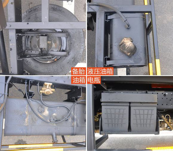 我們?cè)賮砜纯吹妆P上各零部件的分配,電瓶置于駕駛室左后方,與之對(duì)應(yīng)的右后方是油箱,油箱后方則是液壓油箱,緊隨其后的就是備胎。各零部件在不影響美觀的前提下,分配合理,實(shí)用性也很強(qiáng)。