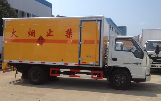 專用功能說明: 1、爆破器材運輸車底盤的型號可分為:東風(fēng)、江鈴、江淮、奧鈴、時代、歐曼、慶鈴、解放等。驅(qū)動形式可分為:雙驅(qū)動和四驅(qū)動,按額定載質(zhì)量有0.5噸—9.9噸(國防科工委要求最大上戶噸位不超過10噸)。 2、廂體分為兩部分:A:運輸炸藥;B:運輸雷管(抗暴容器);C:炸藥,雷管同時運輸(廂體必須隔倉,分倉運輸,加裝抗爆容器)。廂體為雙層金屬骨架結(jié)構(gòu),外部為冷扎鋼板,內(nèi)壁采用鋁合金板蒙面,夾層為隔熱阻燃材料填充。設(shè)置對開門,如需安裝抗暴容器則增開側(cè)門,側(cè)壁設(shè)有防雨功能自然通風(fēng)窗口,以使廂內(nèi)外空氣流動,廂體內(nèi)部做防靜電處理,廂體底部與廂內(nèi)前部鋪有阻燃導(dǎo)靜電膠板,并與底盤等電位連接,通過車輛后端的導(dǎo)靜電裝置與大地相連,可防止靜電火花的產(chǎn)生和車輛靜電及時釋放,提高爆破器材運輸車的安全性。廂體內(nèi)部前面和側(cè)面裝有固定拉環(huán),與捆綁帶使用捆綁貨物以避免移動,保證安全。 3、 感煙報警器:是感測車廂內(nèi)火情的專用裝置,安裝在車廂內(nèi)頂部,并與駕駛室內(nèi)報警裝置連接,當(dāng)有火情煙霧出現(xiàn),在駕駛室進(jìn)行蜂鳴報警通知駕駛員,保證及時消除險情。 4、防盜報警器:為了保證安全,在車廂后方和側(cè)面開設(shè)有門,在各門器框上方安裝有門磁開關(guān)報警器(根據(jù)用戶要求選裝防盜監(jiān)視器。行車記錄儀等)當(dāng)廂門被打開時,駕駛室內(nèi)的蜂鳴器發(fā)出報警聲音,不使用時可將駕駛室內(nèi)的控制開關(guān)關(guān)閉?杀WC在行駛過程中,整車始終處于受控狀態(tài)。 5、整車發(fā)動機(jī)排氣裝置采用前置式,并安裝有排氣火花熄滅器(防火罩),防止熱源對爆炸物產(chǎn)生不良影響。 6、底盤上裝有兩條拖地導(dǎo)靜電膠帶,廂體外側(cè)安裝示廓標(biāo)記燈以及手提滅火器等安全裝置。 7、車身顏色為黃色,并有“嚴(yán)禁煙火”和“爆”字樣,貼有反光標(biāo)識。 |