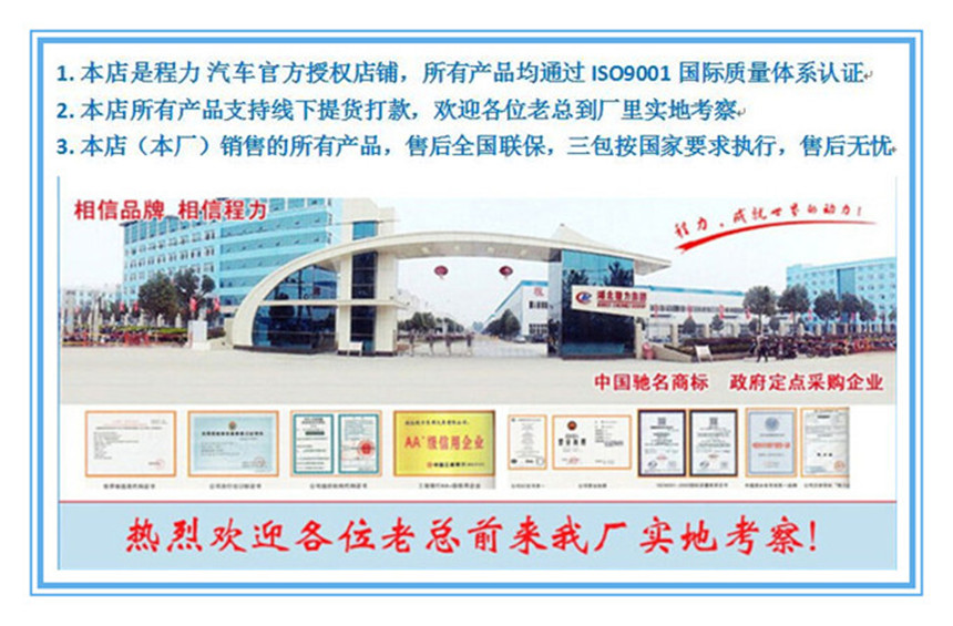 廂體結(jié)構(gòu):采用聚酯濕法制板工藝和玻璃纖維加強(qiáng)不銹鋼立柱框架結(jié)構(gòu),使用國際上最為先 進(jìn)的第五代全封閉聚氨酯板塊粘接法。 廂板材質(zhì):內(nèi)外壁板選用國內(nèi)優(yōu)質(zhì)的機(jī)制2.2mm玻璃鋼;中間保溫材料選用厚進(jìn)口聚氨酯; 廂體厚度80mm 門厚度80mm;底板上面整體鋁花紋板,下面彩鋼板,中間進(jìn)口聚氨酯; 配件:廂體周邊2.5mm鋁合金包邊,不銹鋼包角,不銹鋼門鎖,防碰膠皮4塊,不銹鋼門框, 不銹鋼合頁,箱內(nèi)節(jié)能照明燈。 制冷機(jī)組:冷藏機(jī)組知名的國產(chǎn)品牌凱利,漢雪或華泰頂置式機(jī)組,廂體溫度0上5度至0下18度(可選配進(jìn)口機(jī)組韓國韓亞,美國開利冷王等)。 駕駛室可視---車廂溫度監(jiān)視儀、溫度控制器以及溫度打印機(jī)等。(根據(jù)客戶需求可選裝) 整車出具:正規(guī)底盤合格證,正規(guī)整車合格證,正規(guī)車輛購置稅發(fā)票,全國統(tǒng)一機(jī)動(dòng)車,隨車工具,車輛質(zhì)保手冊,車輛使用說明書,全國服務(wù)站名錄等。讓您上戶無憂,方便快捷! 冷藏車廂體制作技術(shù): 1、分片拼裝的“三明治”板粘接式,目前國內(nèi)較大的冷藏車生產(chǎn)企業(yè)都采用這種技術(shù),利用這種技術(shù)生產(chǎn)的冷藏車隔熱性能較高。 2、分片拼裝的注入發(fā)泡式。 3、整體骨架注入發(fā)泡式。 4、真空吸附式粘貼冷藏機(jī)組分類:冷藏機(jī)組分為非獨(dú)立制冷機(jī)組和獨(dú)立制冷機(jī)組。國產(chǎn)機(jī)組與進(jìn)口機(jī)組等。一般車型都采用外置式冷機(jī),少數(shù)微型冷藏車采用內(nèi)置式冷機(jī)。對于溫度要求較低的冷藏車,可采取廂體內(nèi)置冷板(功能相當(dāng)于蒸發(fā)器) 要想廂體的保溫效果好,自然是隔熱層材料的選擇了。 售后及維護(hù)說明: (2)建立定期回訪制度。每年夏季、冬季公司售后服務(wù)人員開展“夏季送綠蔭”和“冬季送溫暖”活動(dòng),保證售出車輛的維修的保養(yǎng)。 (3)冷藏/保溫廂體保修一年(行駛里程不超過25000公里)。在保修期內(nèi),由于材料、制造、裝配方面所造成的損壞,由本公司負(fù)責(zé)更換與修理。 (4)保修范圍內(nèi)不包括正常磨損,對于不按照說明書使用以及交通事故,人為破壞,本公司不予保修。到本公司修理,由用戶承擔(dān)修理費(fèi)用。 (5)開通24小時(shí)服務(wù)熱線,對用戶提出的維修要求實(shí)行4小時(shí)內(nèi)答復(fù),24小時(shí)到達(dá)現(xiàn)場服務(wù)。(邊遠(yuǎn)地區(qū)72小時(shí)到達(dá)現(xiàn)場服務(wù)) (6)超過保修期的廂體,需更換配件或維修,我公司均能滿足配件供應(yīng)和及時(shí)的服務(wù),無償派技術(shù)人員進(jìn)行維修,只收取原材料成本費(fèi)。 備注:產(chǎn)品信息、圖片、參數(shù)等,僅供用戶選購參考,對冷藏車有特殊要求的請?zhí)崆案嬷?/span> 我們的授權(quán)和榮譽(yù)![]() 我們的冷藏車給您的貨物一個(gè)清涼的世界 ![]() 我們的細(xì)節(jié)展示 ![]() ![]() 訂購程力專汽,只需輕松5步確定需求銷售經(jīng)理隨后會(huì)對您進(jìn)行電話訪問咨詢,了解您的購車需求,并根據(jù)您的實(shí)際情況推薦適合您的方案和產(chǎn)品,并發(fā)電子版產(chǎn)品資料配置,方便您進(jìn)行參考和定奪。 簽訂合同一旦您確定購車方案,雙方會(huì)簽訂訂購合同。 廠家生產(chǎn)交付定金后,我們數(shù)萬名員工將開始為您制造高品質(zhì)的產(chǎn)品。 滿意交付您可以選擇到廠家自提汽車,或者選擇送車服務(wù)。如果您選擇廠家自提,您可以享受我們星級的售中服務(wù)。 |