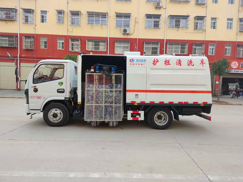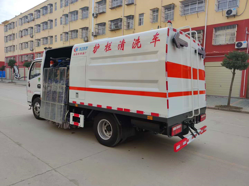 湖北程力國(guó)六東風(fēng)多利卡城市護(hù)欄清洗車主要組成部分 電 氣 系 統(tǒng) | 組 成 | 由底盤車電路和副發(fā)動(dòng)機(jī)電氣部分及專用工作裝置操作控制電路組成。 | 底盤車系統(tǒng)電壓 | 12 V | 工作裝置系統(tǒng)電壓 | 12 V | 清 洗 裝 置 | 型式 | 在正副駕駛室后車架一側(cè)對(duì)稱布置4個(gè)清洗刷,由液壓馬達(dá)驅(qū)動(dòng),刷子升出后內(nèi)外可液壓自動(dòng)調(diào)節(jié)。 | 清洗刷直徑 | cm | φ50 | 清洗刷馬達(dá)轉(zhuǎn)速 | r/min | 300 | 單個(gè)清洗刷數(shù)量 | 55 | 清洗高度cm | 140-160 | 清洗原理 | 采用兩沖、四刷的清洗工藝,兩面同時(shí)清洗,使清洗更加徹底。清洗過程:首先刷輥前面的兩排噴水管噴出水將護(hù)欄充分預(yù)濕,車體前移的過程中,中間的兩排刷輥對(duì)護(hù)欄依次進(jìn)行刷洗,最后由刷輥后面的兩排噴水管噴出水將殘留的灰塵沖去 |