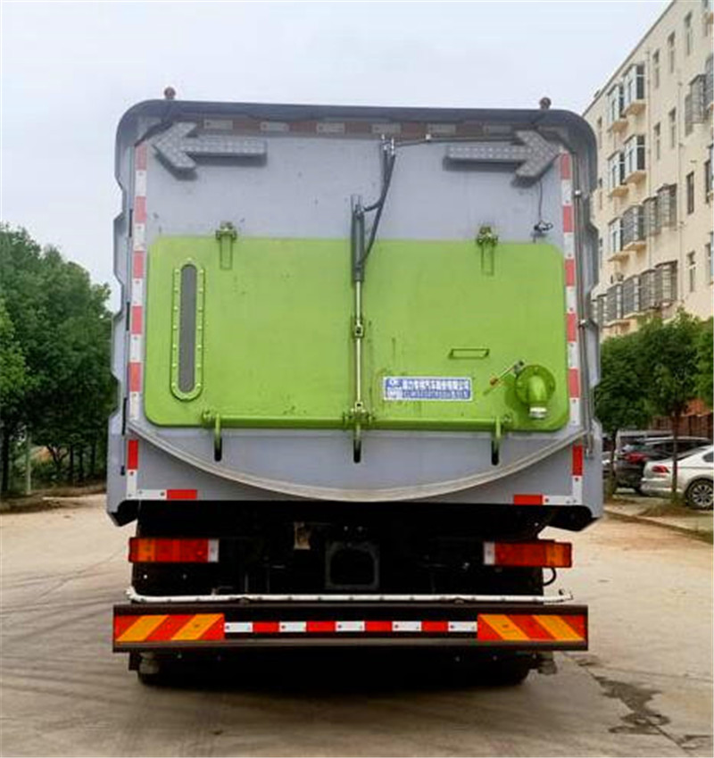 東風天龍洗掃車垃圾箱采用單層不銹鋼結(jié)構(gòu),傾翻卸料,帶高壓位自潔裝置。自潔裝置可在垃圾箱卸料時幫助卸料,清洗垃圾箱內(nèi)部。