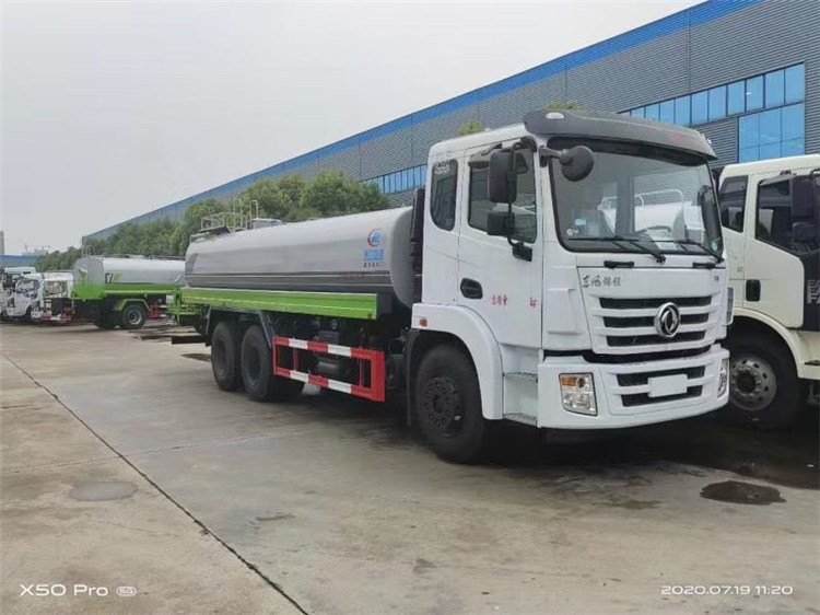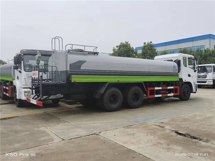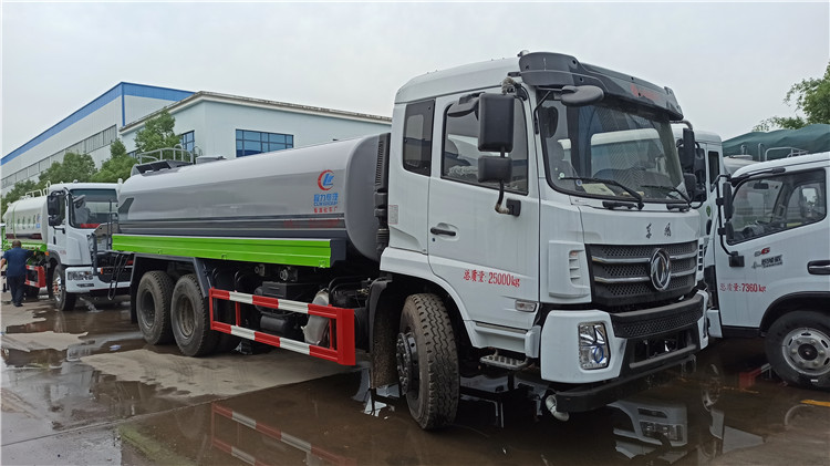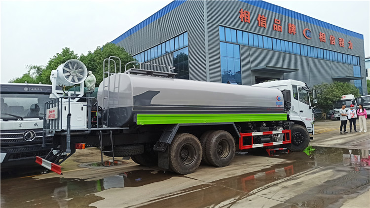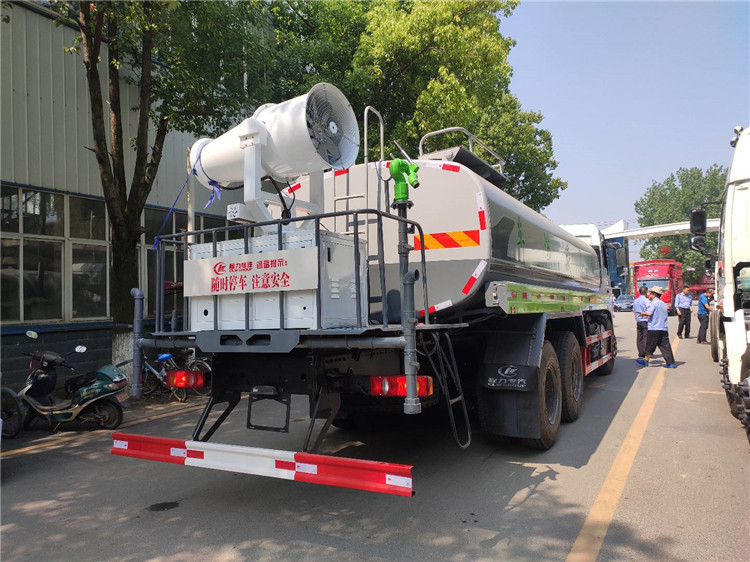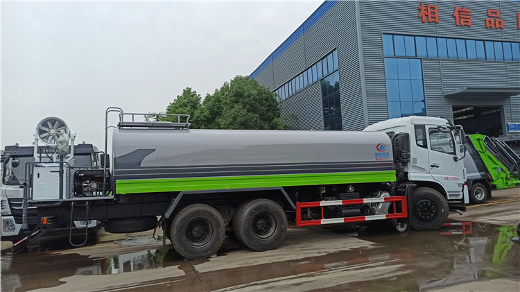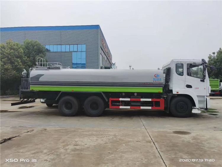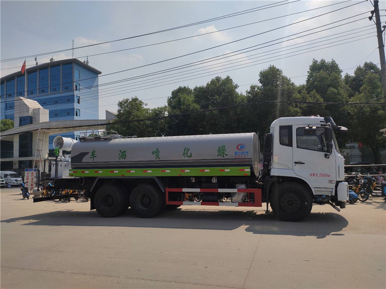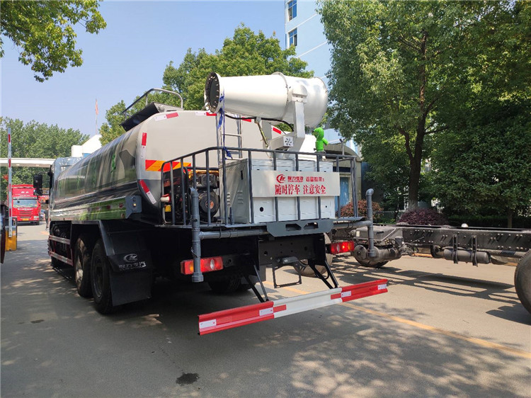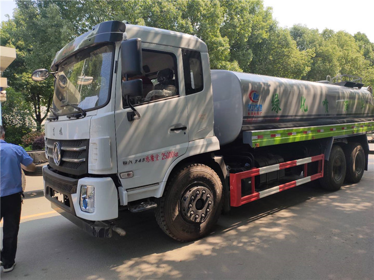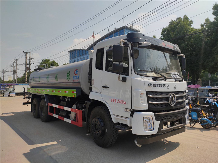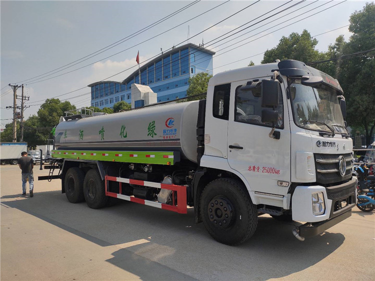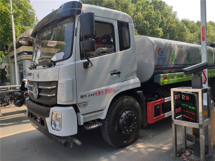湖北程力國六東風(fēng)錦程V6后雙橋18噸灑水車程力威牌CLW5253GPSD6型綠化噴灑車廠家配置: | 湖北程力國六東風(fēng)錦程V6后雙橋18噸灑水車底盤配置:采用東風(fēng)后雙橋原裝底盤,東風(fēng)錦程齊星軍工V6四點(diǎn)懸浮駕駛室,4350+1350mm軸距,搭載國六(國Ⅵ)東風(fēng)康明斯230/260馬力柴油發(fā)動(dòng)機(jī),功率169/191kw,國六排放,陜齒法士特八檔變速箱,11.00R20鋼絲胎,前橋5T,后橋雙10T,方向助力,斷氣剎,排氣制動(dòng),原裝空調(diào),行駛記錄儀,多媒體顯示屏,電動(dòng)門窗,中控鎖,氣囊座椅,ABS。湖北程力國六東風(fēng)錦程V6后雙橋18噸灑水車專用配置:罐體容積:19立方米,罐體鋼板為4mm碳鋼Q235材質(zhì)專用容積板一次成型,罐內(nèi)隔板具有防波作用,以減輕汽車行駛時(shí)罐體液體沖擊;配大功率專用灑水泵,泵可自吸自排;整車前沖、后灑、側(cè)噴、后平臺(tái)帶綠化灑水炮,灑水炮可全方位旋轉(zhuǎn),可連續(xù)調(diào)成直沖狀、大雨、小雨、毛毛雨;前封頭帶水位計(jì),后平臺(tái)主管路帶1寸澆花接口,后爬梯,帶1個(gè)消防接頭,帶1個(gè)自流閥,1個(gè)過濾裝置。湖北程力國六東風(fēng)錦程V6后雙橋18噸灑水車選裝配置:1、可選裝氣動(dòng)球閥開關(guān)駕駛室內(nèi)控制; 2、可選裝后平臺(tái)帶CLW-30、40型霧炮機(jī)組