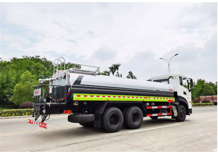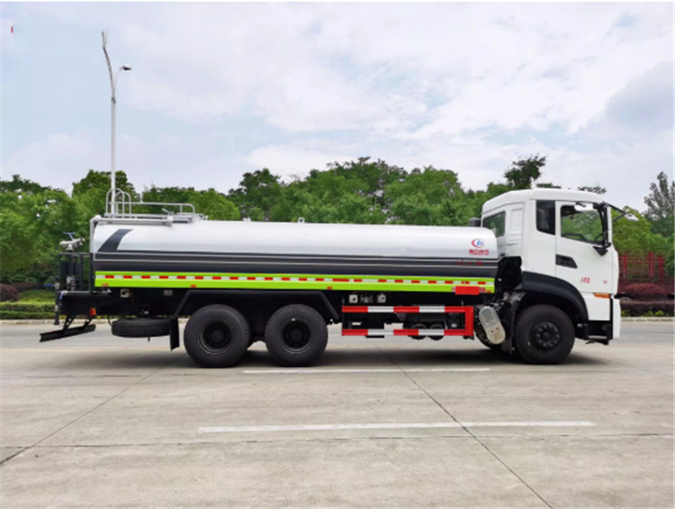 東風(fēng)天龍KL/VL后雙橋?yàn)⑺?/strong>是一款采用國(guó)六排放標(biāo)準(zhǔn)東風(fēng)天龍后雙橋原裝底盤改裝的環(huán)衛(wèi)車,該車配置豪華,駕乘舒適,該車罐體容積:18立方米,標(biāo)配前沖、后灑、側(cè)噴、后平臺(tái)高炮,是園林綠化、小區(qū)物業(yè)、公路養(yǎng)護(hù)的常用車型。 國(guó)六東風(fēng)天龍后雙橋18方高端灑水車(綠化噴灑車)底盤配置:采用東風(fēng)天龍后雙橋原裝底盤,東風(fēng)天龍豪華駕駛室,4400+1350mm軸距,搭載國(guó)六(國(guó)Ⅵ)東風(fēng)康明斯290馬力柴油發(fā)動(dòng)機(jī),功率213kw;東風(fēng)商用DDi350馬力柴油發(fā)動(dòng)機(jī),功率257kw,國(guó)六排放,陜齒法士特9檔變速箱,11.00R20鋼絲胎/295真空胎,前橋5T,后橋雙10T,方向助力,斷氣剎,排氣制動(dòng),原裝空調(diào),行駛記錄儀,多媒體顯示屏,電動(dòng)門窗,中控鎖,氣囊座椅,ABS。 國(guó)六東風(fēng)天龍后雙橋18方高端灑水車(綠化噴灑車)專用配置:罐體容積:18立方米,罐體鋼板為4mm碳鋼Q235材質(zhì)專用容積板一次成型,罐內(nèi)隔板具有防波作用,以減輕汽車行駛時(shí)罐體液體沖擊;配大功率專用灑水泵,泵可自吸自排;整車前沖、后灑、側(cè)噴、后平臺(tái)帶綠化灑水炮,灑水炮可全方位旋轉(zhuǎn),可連續(xù)調(diào)成直沖狀、大雨、小雨、毛毛雨;前封頭帶水位計(jì),后平臺(tái)主管路帶1寸澆花接口,后爬梯,帶1個(gè)消防接頭,帶1個(gè)自流閥,1個(gè)過濾裝置。