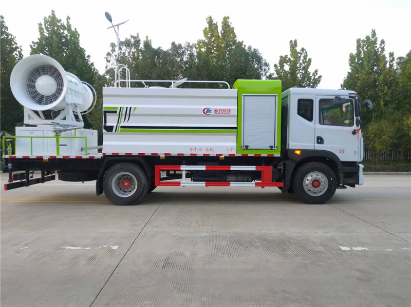底盤配置:采用國六東風新款多利卡D9系列底盤生產(chǎn),軸距4500mm,底盤發(fā)動機為康明斯230馬力,295真空胎,東風6檔變速箱,國六排放標準,罐體容積:10立方,罐體鋼板采用Q235碳鋼鋼板,采用方形瓦楞設(shè)計,外觀大氣靚麗,后工作平臺加裝高效率車載式風送噴霧機,噴藥炮霧化效果好,可遠程噴霧,東風多利卡D9抑塵車帶前沖后灑、側(cè)噴、平臺高炮、自流閥及消防接頭各1個、標配億豐泵或金龍泵,可選裝50-100米噴霧機。 上裝配置:罐體容積10立方,罐體為方形罐,罐體內(nèi)部做防腐,主管路鍍鋅,帶前部沖洗路面噴灑裝置、后部扇形降塵噴灑裝置,兩側(cè)面噴灑裝置,帶后部工作平臺、平臺上安裝綠化灑水炮(炮噴射形狀可調(diào)),可調(diào)直沖狀、大雨、中雨、毛毛雨,可連續(xù)調(diào)節(jié),采用中聯(lián)唯佳大流量水泵,消防接口可自流,音樂喇叭,50-100米噴霧機組。 噴霧機配置:TDM-M08型,可無線操作,及手動操作。根據(jù)需求選配的霧炮機霧化距離在60-120米不等(靜風室內(nèi)距離),實際射程:(霧化射程會受濕度、溫度、風速等各方面天氣因素的影響,另外天氣干燥地區(qū)一部分在空中被蒸發(fā)掉)。CLW-100型60米,副發(fā)電機組功率50(Kw),風機功率15(Kw),不銹鋼多級離心泵功率5.5(Kw)。100米無線操作,霧化距離60米(靜風室內(nèi)距離)實際射程:(霧化射程會受濕度、溫度、風速等各方面天氣因素的影響,另外天氣干燥地區(qū)一部分在空中被蒸發(fā)掉)。 湖北程力國六東風D9方罐抑塵車程力威牌CLW5180TDYD6型多功能抑塵車圖片價格: