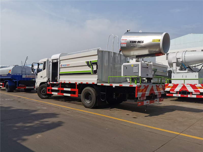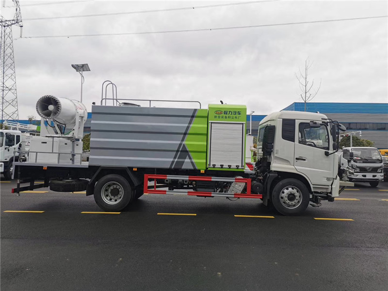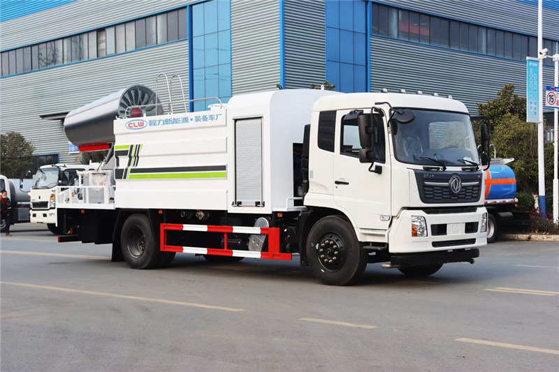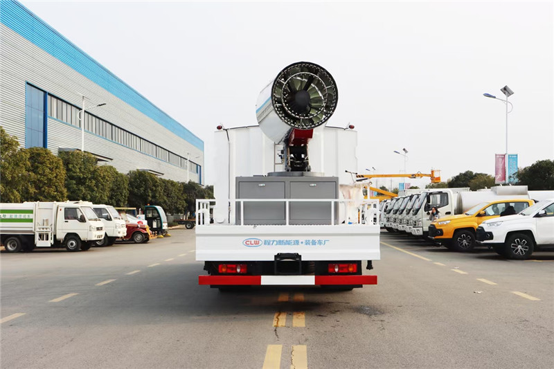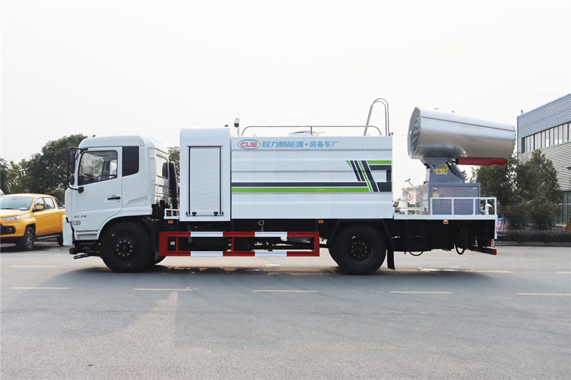 湖北程力國六東風(fēng)天錦60-100米抑塵車(方罐)程力威牌CLW5181TDYD6型多功能抑塵車廠家配置: 湖北程力國六東風(fēng)天錦抑塵車底盤配置:底盤采用東風(fēng)天錦國六底盤,公告型號:CLW5181TDYD6,康明斯6缸ISB210馬力發(fā)動(dòng)機(jī),4700軸距,275真空胎,6檔變速箱,原裝空調(diào),ABS。 湖北程力國六東風(fēng)天錦抑塵車上裝配置:罐體容積11.3立方,罐體為方形罐,罐體內(nèi)部做防腐,罐體鋼板采用Q235碳鋼鋼材,整車具備灑水車的一切功能(前沖、后灑、側(cè)噴、平臺高炮),氣動(dòng)球閥控制灑水功能,水位報(bào)警器,標(biāo)配億豐60/90水泵,自流閥及消防接頭各1個(gè)、水管2根。后平臺安裝一臺60米霧炮。 湖北程力國六東風(fēng)天錦抑塵車霧炮參數(shù):CLW-100型60米,副發(fā)電機(jī)組功率50(Kw),風(fēng)機(jī)功率15(Kw),不銹鋼多級離心泵功率5.5(Kw)。100米無線遙控操作,霧化距離60米(靜風(fēng)室內(nèi)距離)實(shí)際射程:(霧化射程會(huì)受濕度、溫度、風(fēng)速等各方面天氣因素的影響,另外天氣干燥地區(qū)一部分在空中被蒸發(fā)掉)。 | 湖北程力國六東風(fēng)天錦60-100米抑塵車(方罐)程力威牌CLW5181TDYD6型多功能抑塵車圖片價(jià)格: